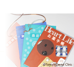 歯科以外の病気や体調次第で、歯科治療の方針が大きく異なる場合がございます。初診の時にご記入いただく問診票には、ご病気やご体質などについては、現在はもちろんのこと、いままでの病気(既往歴)もご申告ください。必要があればそのご病気の担当医師と相談し連携して治療にあたることがございます。 お薬をお使いの方はお薬手帳あるいは薬剤のご持参をお願いします。 |